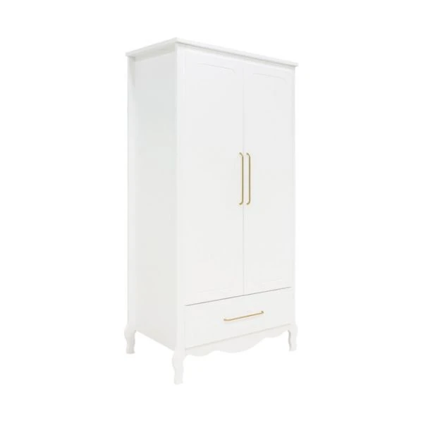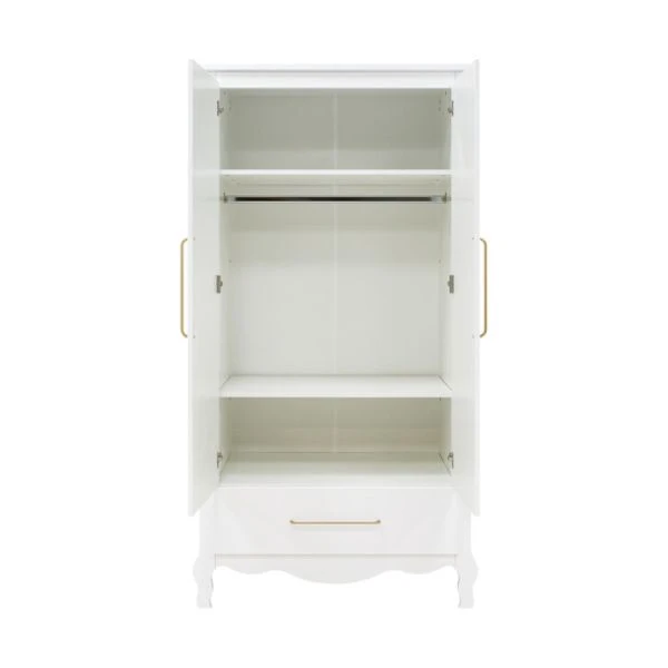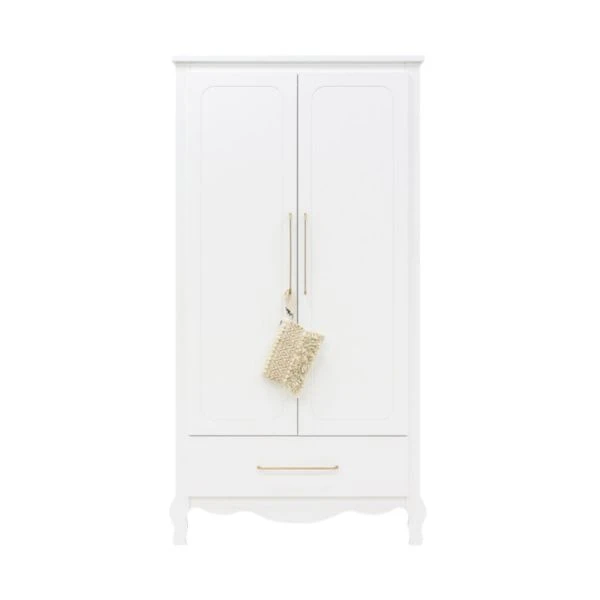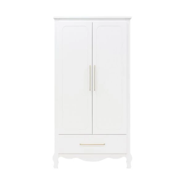 De Bopita Elena Kledingkast 2-Deurs XL Wit is gemaakt van hoogwaardig MDF materiaal en voorzien van een stijlvol design. De deuren en de lade van de kledingkast zijn voorzien van ranke, matte en goudkleurige handgrepen. De kast beschikt over één vaste legplank, één hangroede, één in hoogte verstelbare legplank en een ruime lade. De kast is perfect te combineren met andere producten van de Elena serie van Bopita.