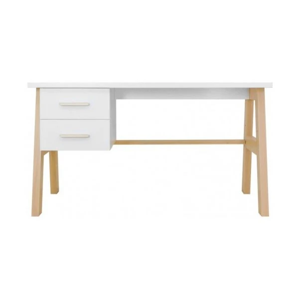 De Bopita Lisa Bureau Wit / Naturel heeft een bijzondere uitstraling en is gemaakt van kwalitatief MDF in combinatie met beukenhout. De schuine beuken poten geven dit bureau een speciale look. Onder het bureau zitten twee opberglades waardoor je het bureau altijd opgeruimd kan houden.
