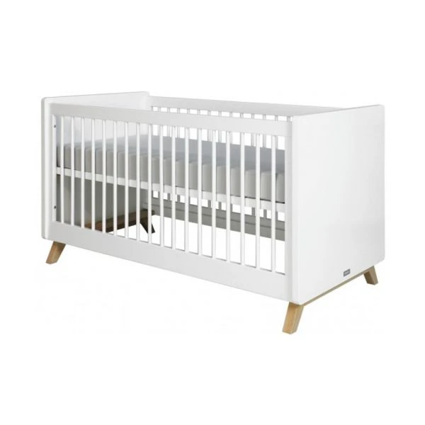 Het Bopita Lynn Babybed Wit 70 x 140 cm is een makkelijk en praktisch bed wat omgebouwd kan worden van ledikant naar een bedbank. Door een ledikantzijde eruit te halen en er een losse plank tussen te monteren krijg je eenvoudig de peuterbedbank. Het babybed beschikt over een witte kleur met daaronder schuine poten van beukenhout. Gemaakt van kwalitatief MDF-materiaal zodat je er lang plezier van hebt.