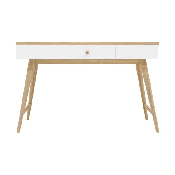 Het Bopita Paris Bureau Wit / Eiken is een praktisch en stijlvol bureau. Het Bureau heeft een unieke uitstraling door de diagonale groeven en eiken accenten. Daarnaast heeft het bureau een breed bureaublad en beschikt het over een handige lade. Het bureau is leuk te combineren met andere meubels van de Bopita Paris serie. Verder is het bureau gemaakt van hoogwaardig MDF en eiken materiaal.
