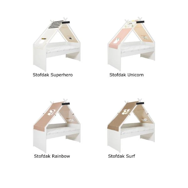 Het Cool Kids Tipibed Wit 90 x 200 cm is origineel en tijdloos van design. De constructie wat er boven aan vastgemaakt is maakt het bed net anders dan een standaard bed. Daarnaast wordt het geleverd met een rollattenbodem wat bestaat uit 16 latten. Het is gemaakt van kwalitatief MDF-materiaal waardoor je er lang plezier van hebt. Als optie zou er een stofdak bij besteld kunnen worden waardoor het een compleet bed wordt. Daarnaast wordt het tipibed geleverd exclusief uitvalbeveiliging, deze kunt u er los bij bestellen.