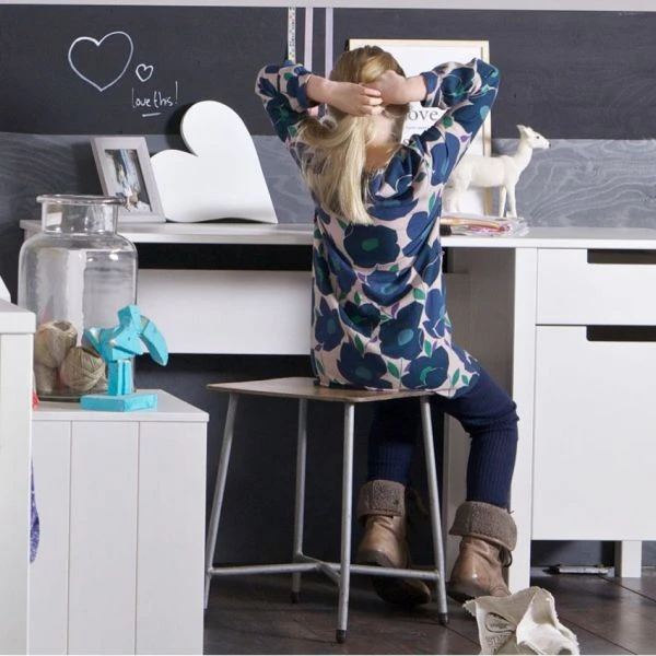 Bovendien is het bureau vervaardigd van massief grenen en is in het wit gespoten.